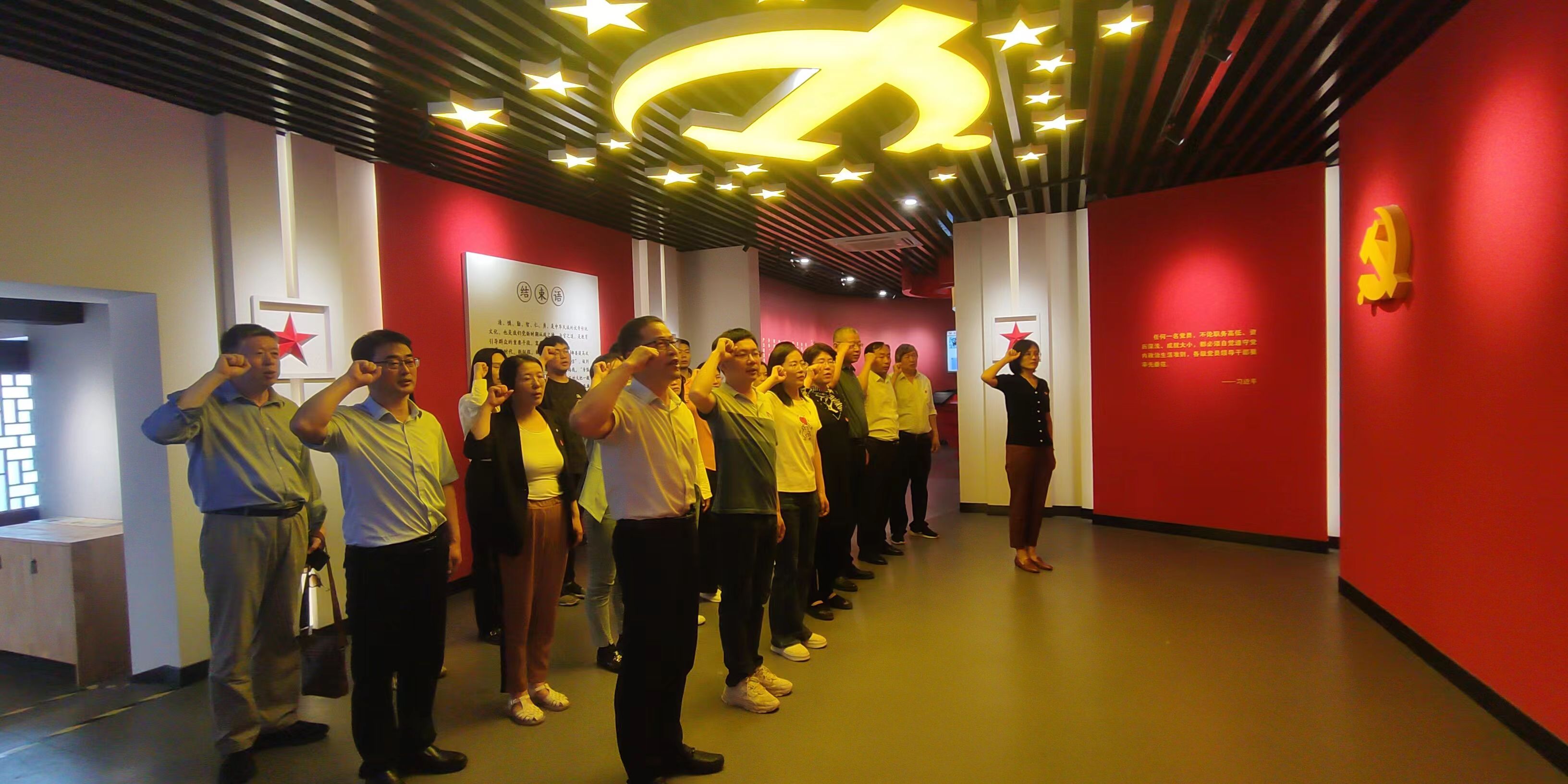 下午在保驾山红色教育基地,大家参观了胶东第一个农村党支部——莱西市前保驾山党支部旧址纪念馆。纪念馆以革命先烈图片、珍贵的历史文物及人物雕塑的形式讲述了以李伯颜、孙耀臣为代表的保驾山革命先烈们的光荣事迹,复原了当年党支部成立时的场景。90多年前,革命先辈在这里播下了革命的火种;今天我们党员在此重温入党誓词,在领誓人的带领下,全体党员面对鲜红的党旗,郑重举起右手,庄严地向党宣誓:“我志愿加入中国共产党,拥护党的纲领,遵守党的章程,履行党员义务,执行党的决定,严守党的纪律……永不叛党。”誓词声声,表达了党员们为共产主义事业奋斗终身坚定信念。
