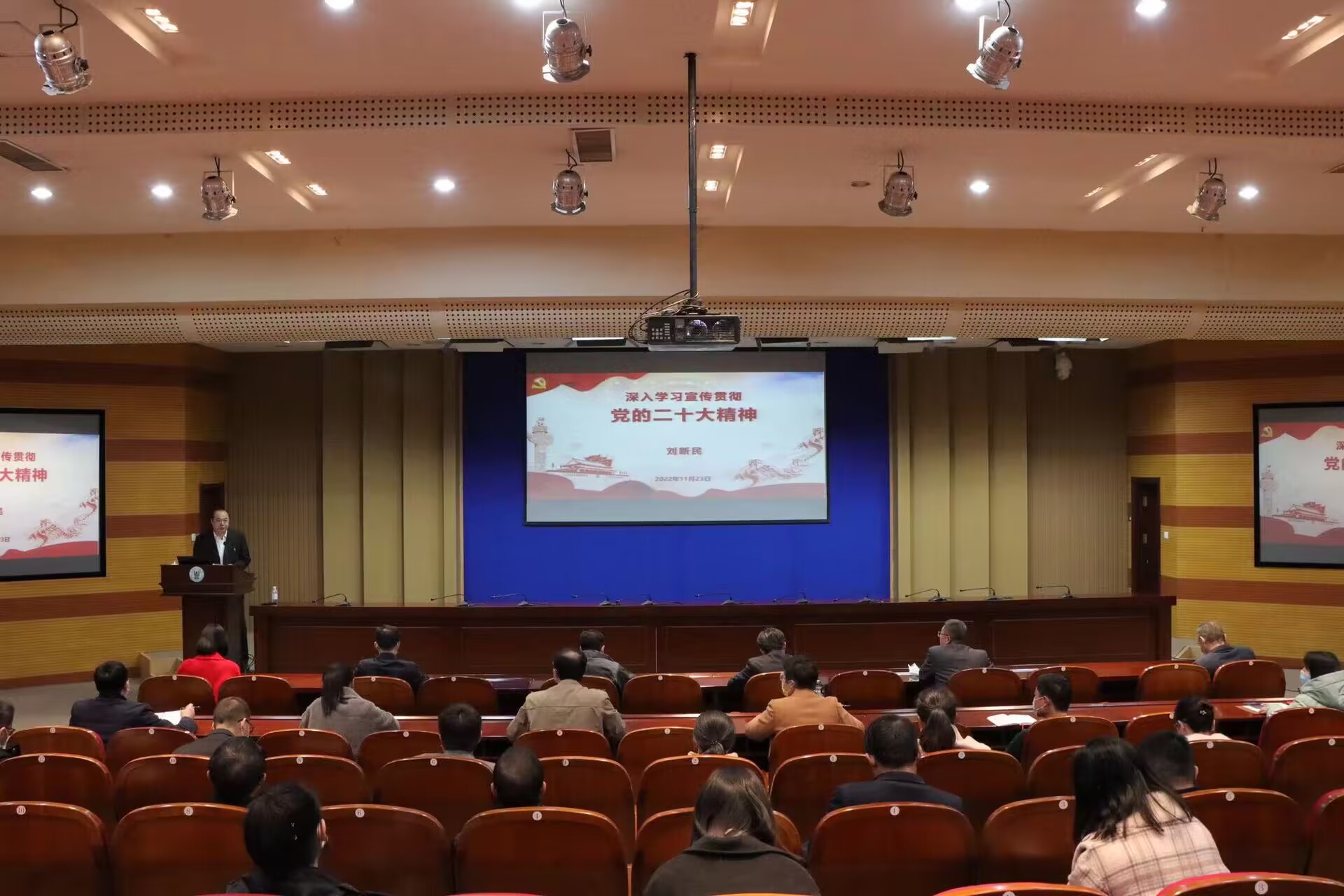 11月23日下午,beat365平台官方网站党委副书记、校长刘新民在学术会馆第一报告厅宣讲党的二十大精神,分管单位党员代表,联系的党支部、学生班级及思政课教师参加。