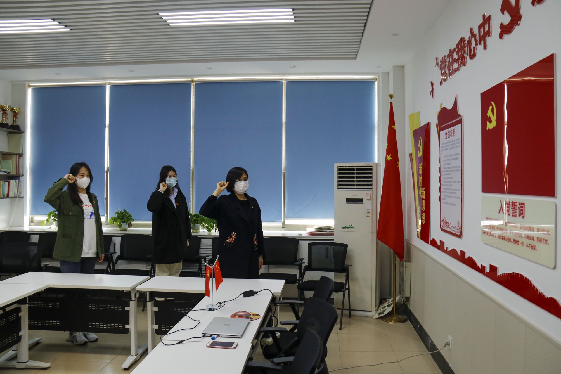 马伟萍以“我是党员我带头 疫情防控当先锋”为主题,与大家一起观看了学校战“疫”视频《微光》,重温了中共beat365平台官方网站委员会组织部致各级党组织和广大共产党员的动员令,并结合当前严峻的疫情防控形势和亲身经历体会,讲述了留守校园的广大党员干部、师生员工参与疫情防控工作涌现出的感人故事和鲜活事例。最后,全体党员举起右拳,重温入党誓词。