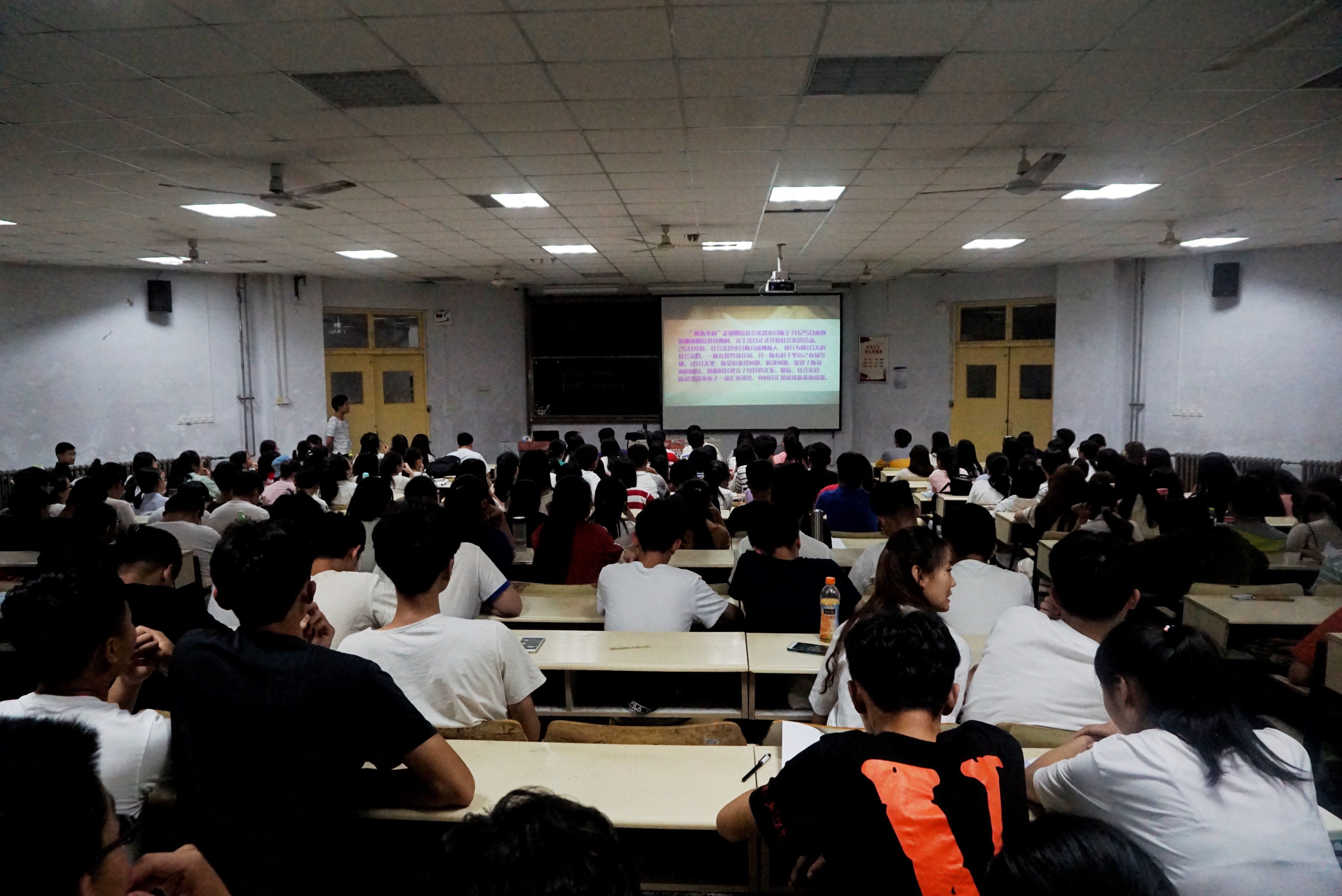 6月19日,由beat365平台官方网站举办的社会实践分享交流会暨2018年暑假社会实践动员大会在教学区顺利举行。本次会议由beat365平台官方网站辅导员谷元兴主持,听众主要是17级的大一新生,此次会议主要分为两个阶段。会议首先以播放14.15级的暑假社会实践活动的视频为开头,让学生们对社会实践的大概过程有个深入了解,之后由主持人解说进入会议的第一阶段。