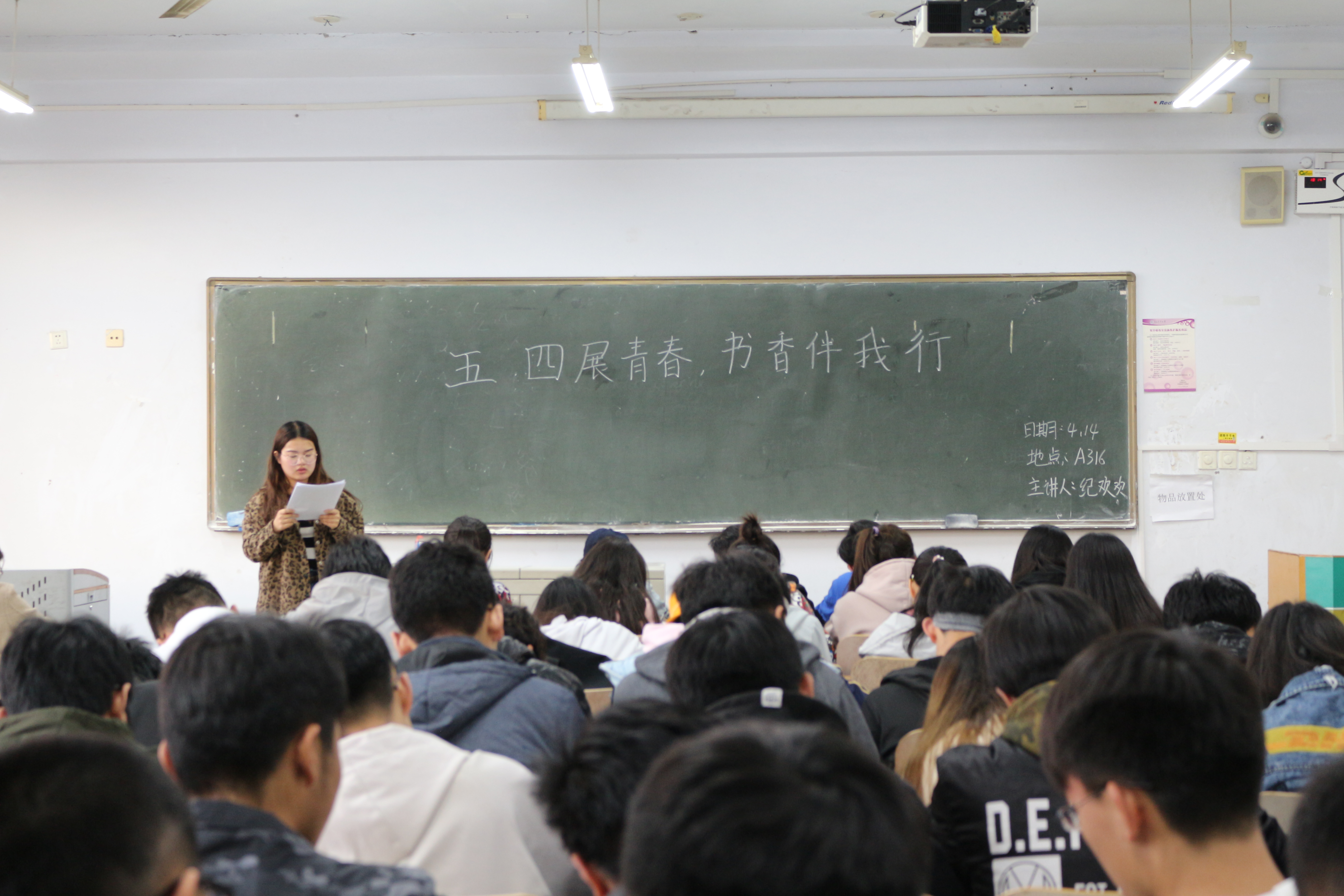 4月14日,beat365平台官方网站于教学区开展“五四展青春,书香伴我行”主题团课,旨在提高同学们的阅读热情,实现图书的充分有效利用。2017、2018级全体同学积极参加。