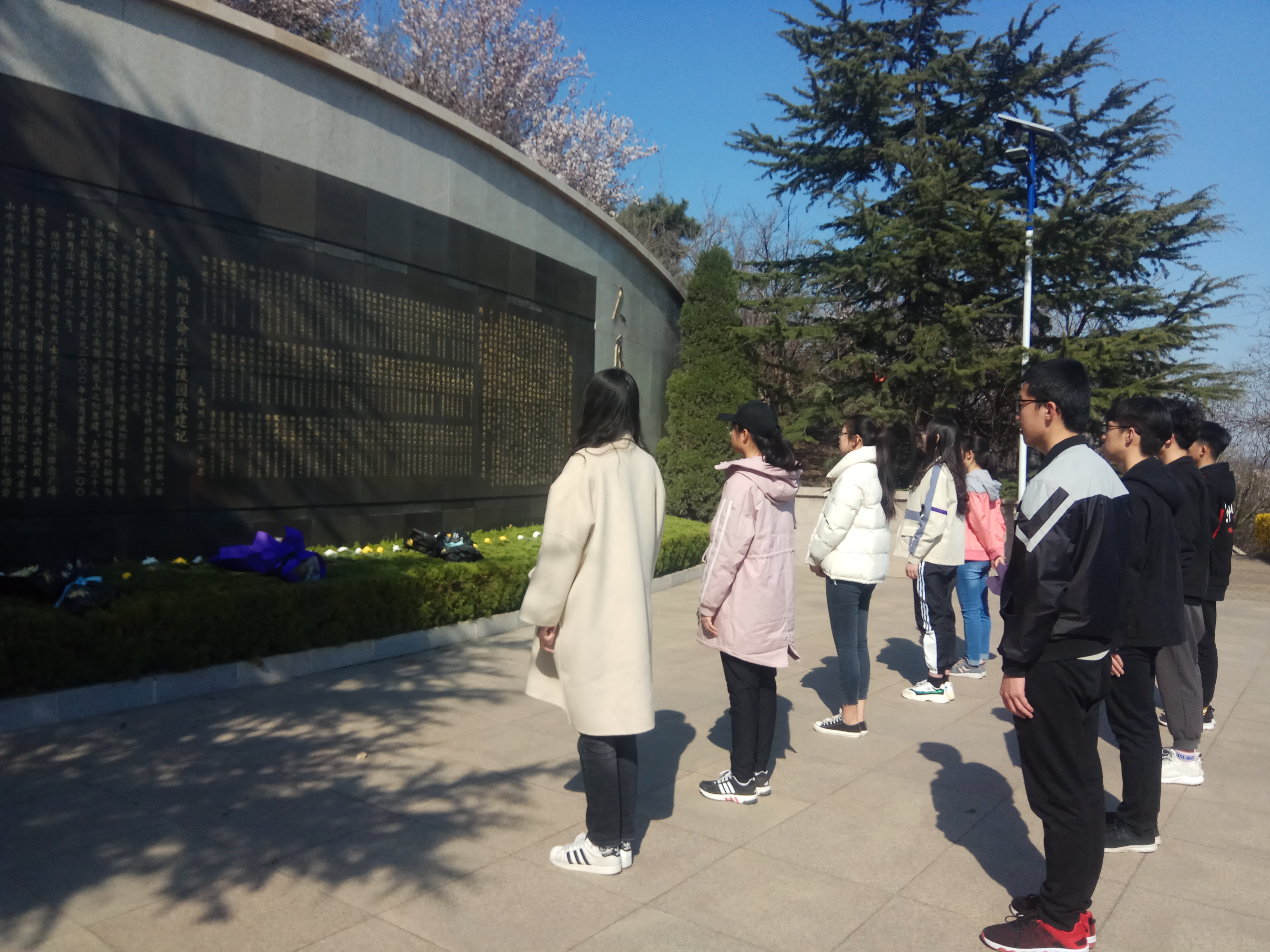 四月的风,温和而又凌冽,同学们被这庄重的气氛所震撼,脚步放轻,停止谈论,认真扫墓。清扫完毕后,全体同学向烈士碑深深鞠躬,以示对先烈的崇高敬意。之后,同学们在革命烈士纪念碑前举行了庄严的团员宣誓仪式,重温入团初心,坚定前进步伐。当说出宣誓人的那一刻,那嘹亮的声音是对自己一次最认真的承诺。在干事们的引导和讲解下,同学们对陵园进行了参观,对革命先烈的英雄事迹有了更深入的了解。同学们深知,今天的幸福生活是无数革命先烈用生命换来的,作为祖国未来的建设者,传承好革命先烈的民族精神便是对他们最好的告慰。