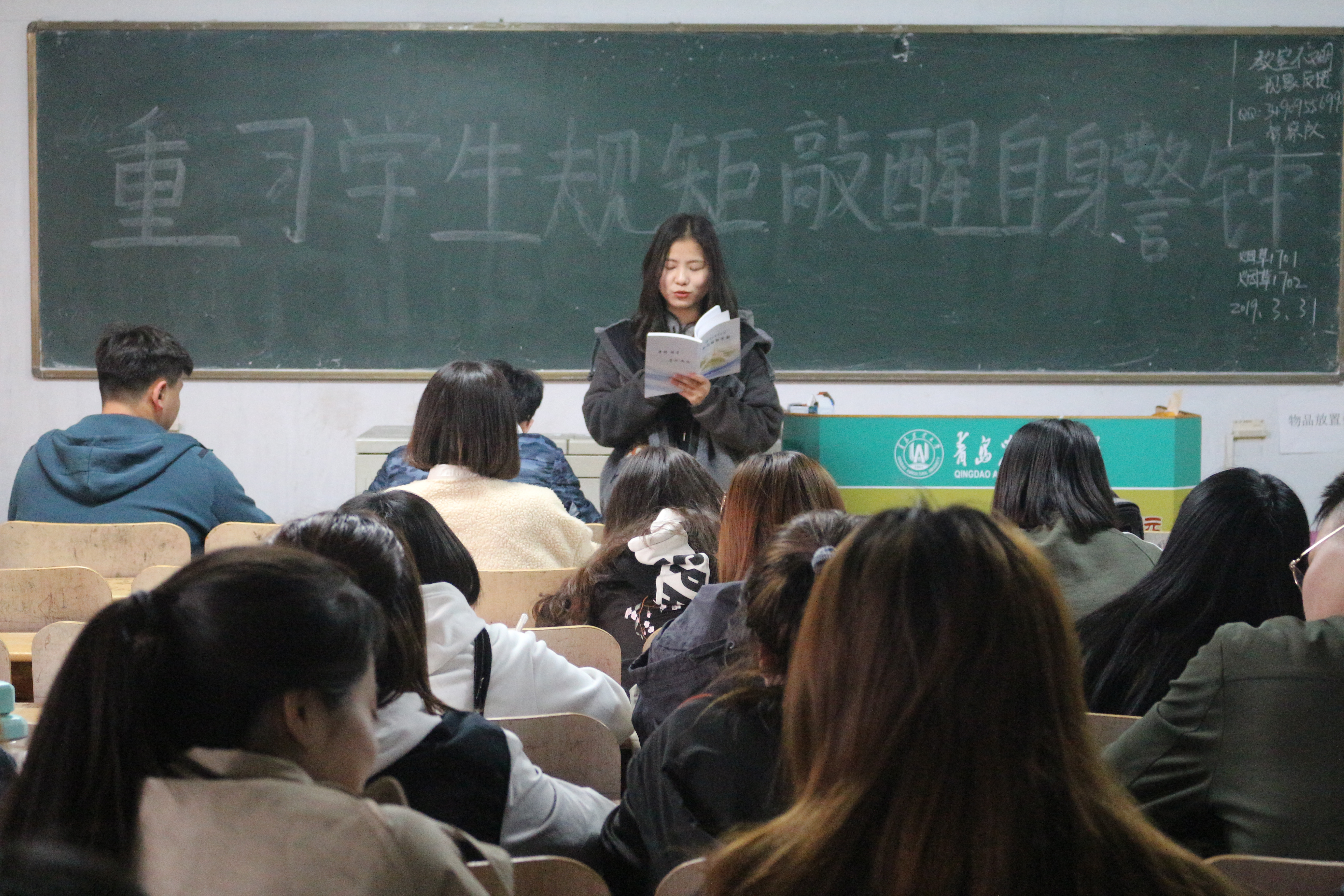 3月31日,beat365平台官方网站于教学区开展“重习学生手册,敲醒自身警钟”主题团课,旨在规范学生日常行为,进一步加强院纪和院风建设,增强我院学生学习的积极性和自主性。2017、2018级全体团员积极参加。