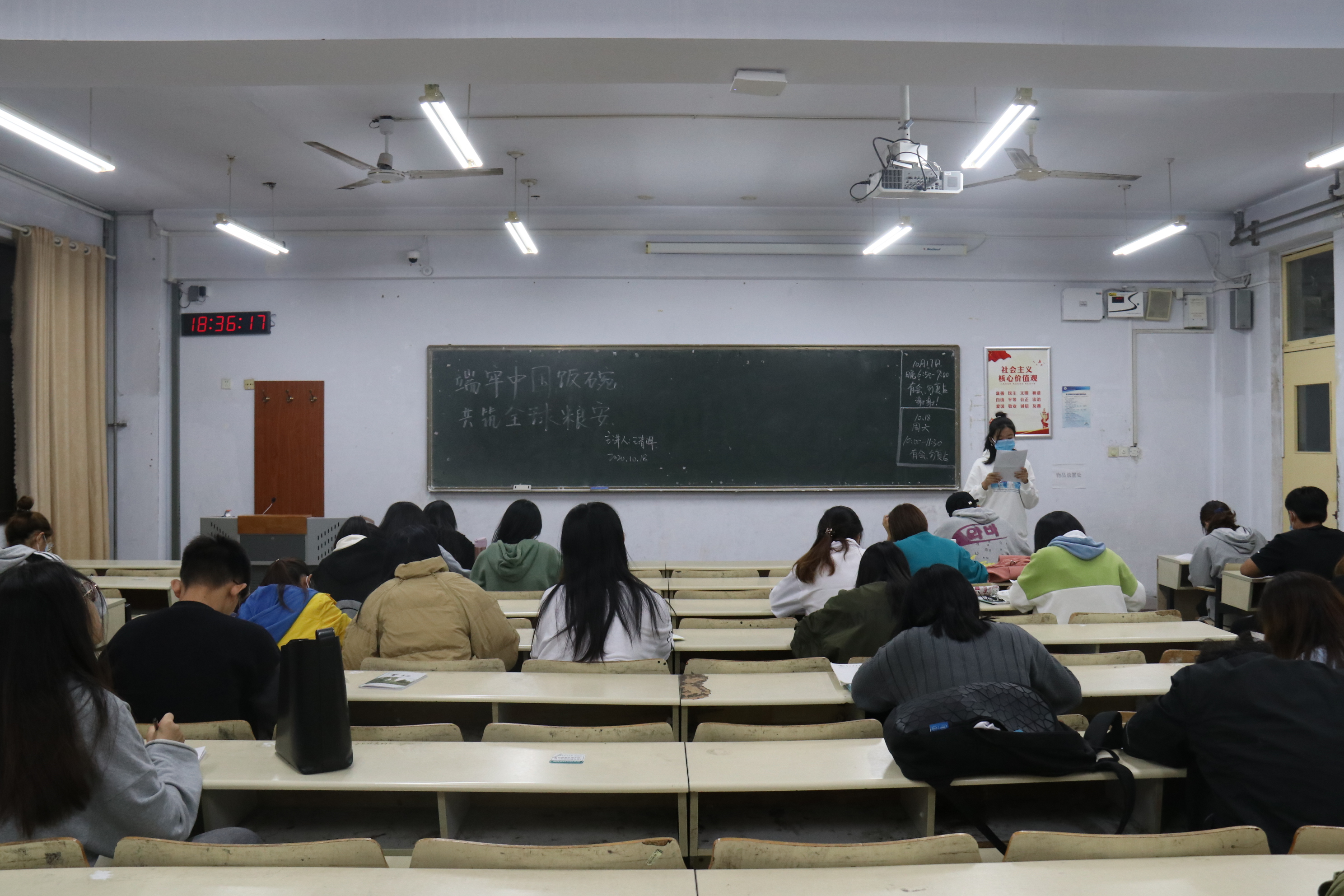 10月18日,beat365平台官方网站于教学区开展“端牢中国饭碗,共筑全球粮安”主题团课,旨在培养学生养成节约粮食的良好习惯,引领文明餐饮新风尚,学院2019级、2020级全体学生参加。