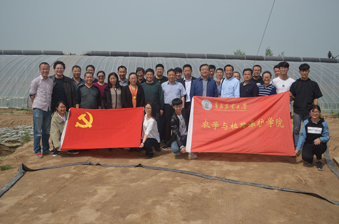4月15日,在农学与植物保护学院党委书记张玉梅,学院党委副书记、副院长李军的带领下,“科技兴农、科技助农、科技惠农”特色党日活动,走进了菏泽市东明县,针对当地特色农业产业发展需求,此次党日活动还特别邀请了党外专家“草莓教授”姜卓俊老师一同参加。活动中,张玉梅一行认真调研了东明县多个村镇的蔬菜大棚、瓜果大棚和莲藕种植基地,与当地领导和农民种植户座谈,全面深入了解当地科技需求。学院专家教授深入农户大棚,结合农户大棚的实际情况,对农民提出的良种选择、病虫害防治等问题现场答疑解惑,并根据当地土壤的酸碱性对科学施肥、瓜果蔬菜栽培等问题进行技术指导。此外,专家教授还结合寿光等地的先进的蔬菜种植技术和经验,对当地现代大棚的科学管理提出了合理化建议。